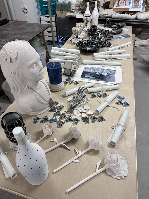 Large-scale sculptural environments that integrate ceramic figures, still life elements, and photographic imagery to explore memory, domestic space, and environmental concern. In Process © Copyright 2026 | Nan Smith | All rights reserved sitemap FollowFollowFollow